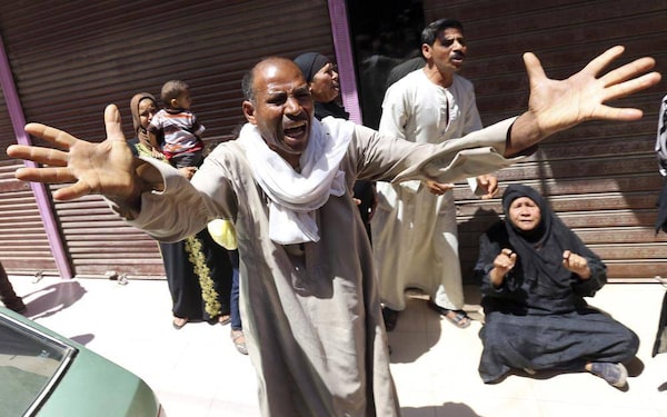 Relatives and families of members of the Muslim Brotherhood and supporters of ousted Egyptian President Mohamed Mursi react outside a court in Minya, south of Cairo, after the sentences of Muslim Brotherhood leader Mohamed Badie and his supporters were announced, June 21.MOHAMED ABD EL GHANY/Reuters