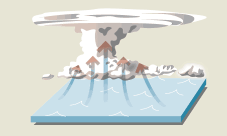 2. The thunderstorms convert the moisture into heat. The heat causes more air to flow to the centre of the storm causing evaporation.