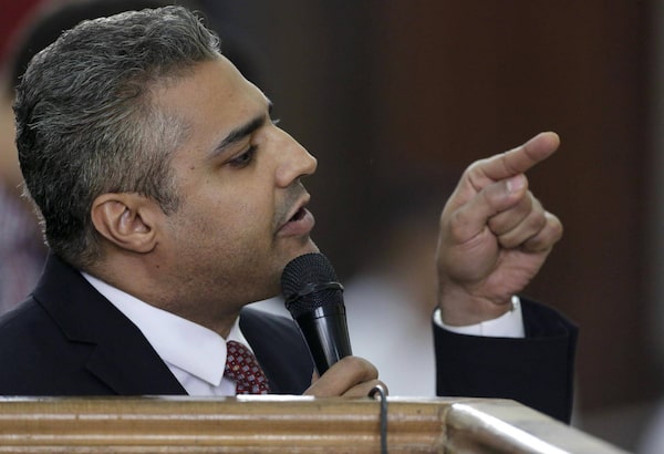 Canadian Al-Jazeera English journalist Mohammed Fahmy speaks to the judge during his retrial at a courtroom in Cairo, EgyptAmr Nabil/The Associated Press
