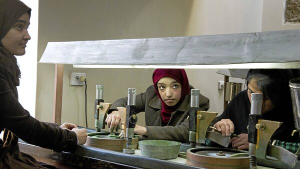 In the institute's low-ceiling classrooms, students learn wood-working, paint Persian-style miniatures, operate hand-turned gemstone cutting machines and shape coils of wet clay into pots. The three-year cycle also aims to make them computer-literate and business savvy, with classes in art history, design, computers, marketing, languages and business management.