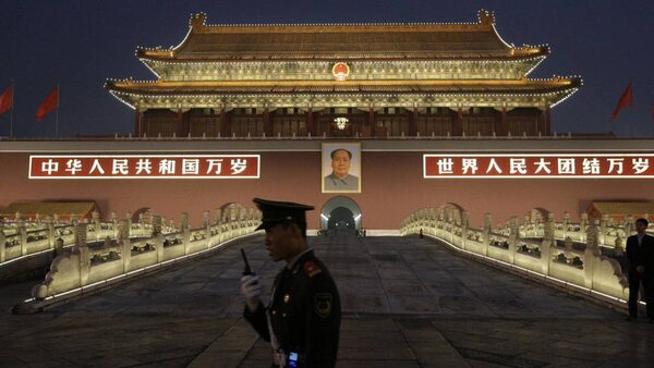 A Chinese police officer stands guard in front of Tiananmen Square in this 2009 file photo.