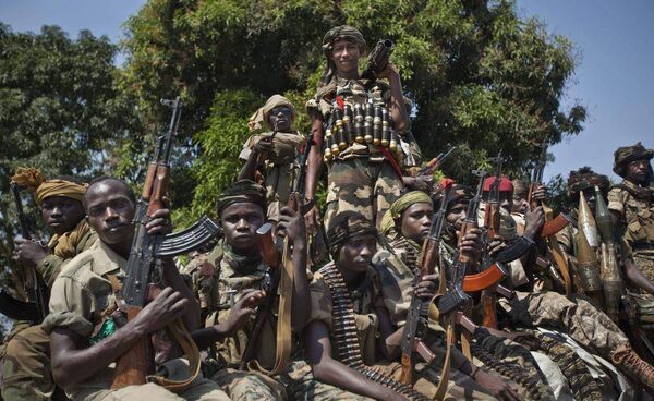 Chadian soldiers ride on a truck in a large convoy of other Chadian soldiers who are fighting in support of Central African Republic president Francois Bozize, and are pictured in January, 2013. France has sent troops to defend the Central African Republic’s airport following heightened hostilities from the rebels.Ben Curtis/The Associated Press