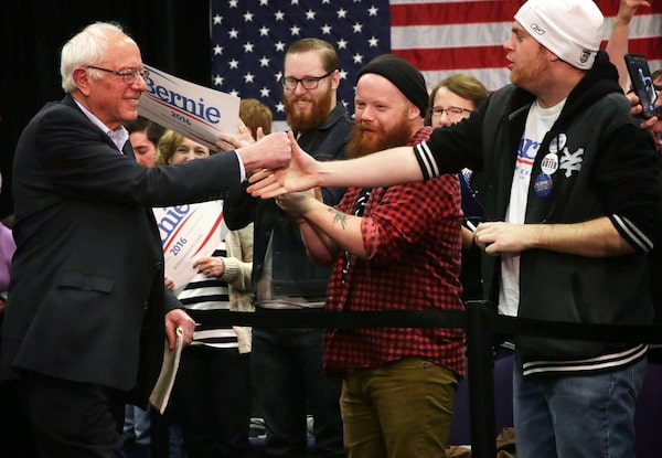 Sen. Bernie Sanders greets supporters as he arrives at a campaign event in Waterloo, Iowa.Alex Wong/Getty Images