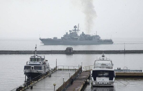 The Ukrainina frigate Hetman Sahaydachy, background, enters the Black Sea port of Odessa, Ukraine, Thursday, March 6, 2014.Sergei Poliakov/The Associated Press