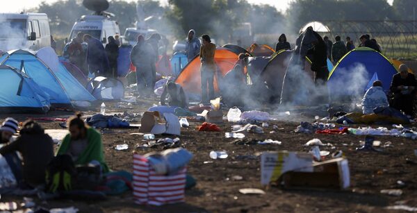 People wake up in a camp at the border line between Serbia and Hungary near Roszke, southern Hungary.Matthias Schrader/The Associated Press
