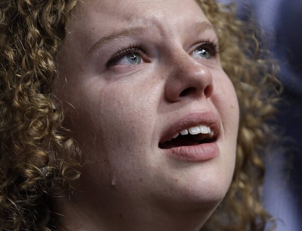 Delegate Sondra Milkie from Madison, Wis., cries during the closing of the convention.John Locher/The Associated Press