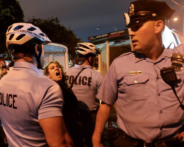 A protester screams as she is detained near the site of the Democratic National Convention.Bryan Woolston/Reuters
