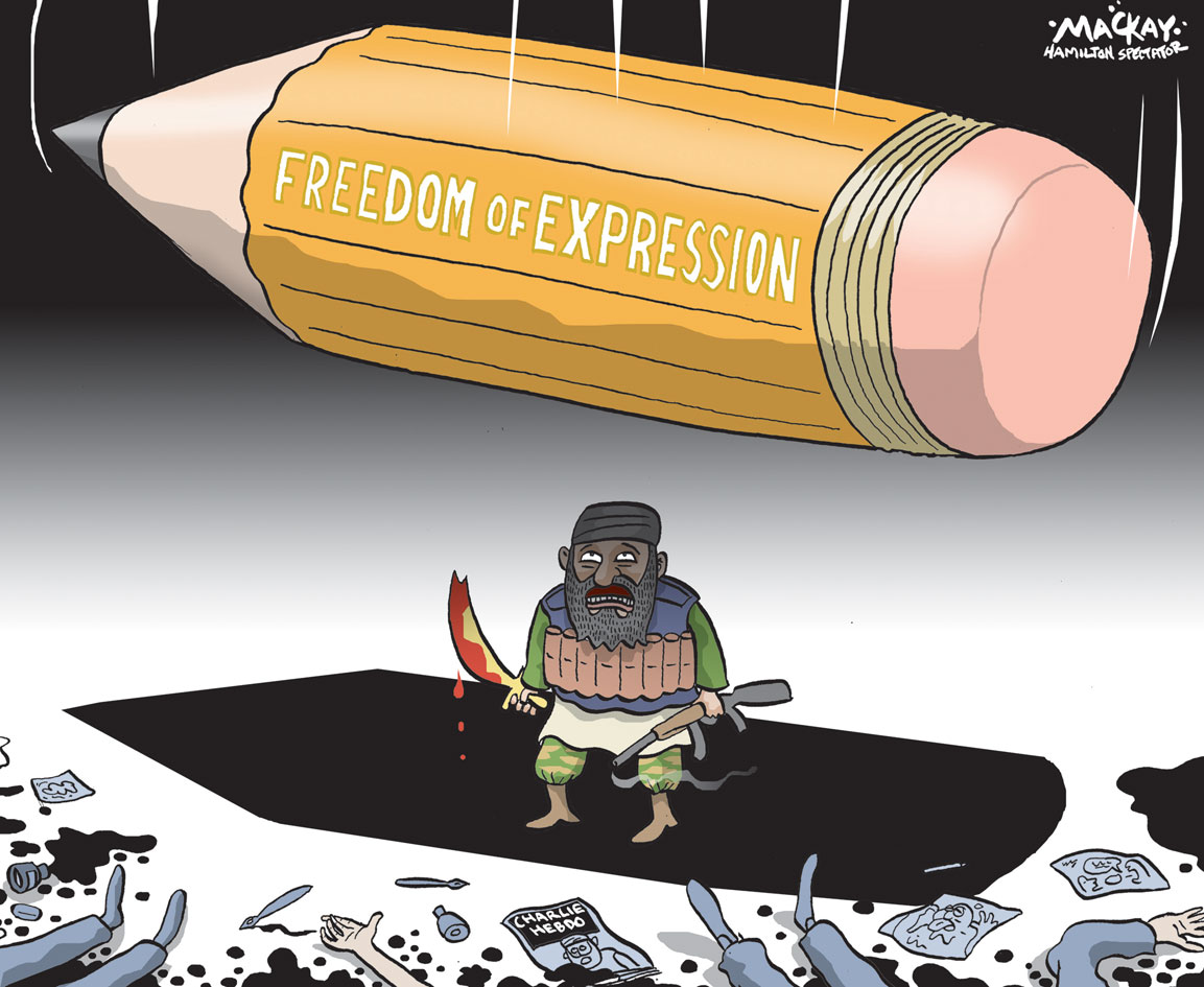 Cartoonists from across Canada defend freedom of the press and express their solidarity with satirical newspaper Charlie Hebdo