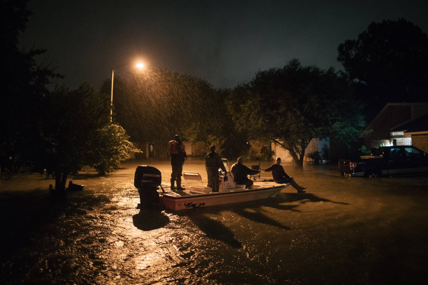 Civilians patrol for stranded residents in Katy, Texas.Alyssa Schukar/The New York Times