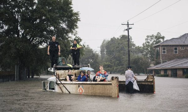 Rescue workers and civilians wait for help in Houston.Alyssa Schukar/The New York Times