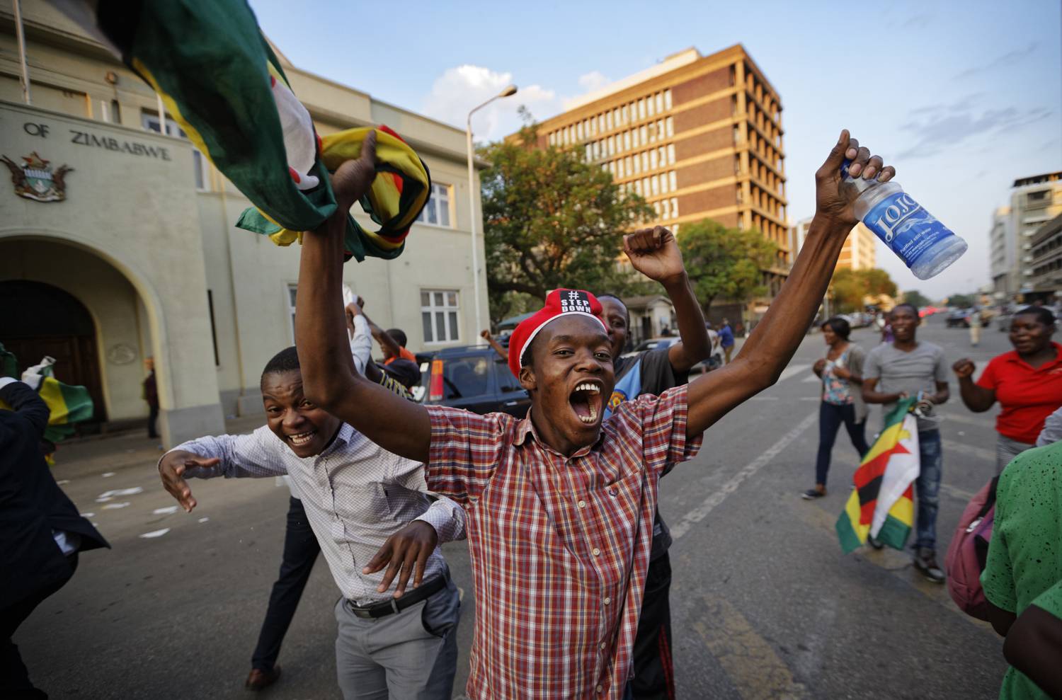 Harare residents celebrate in front of the parliament after the resignation of Zimbabwe's president Robert Mugabe.MUJAHID SAFODIEN/AFP / Getty Images