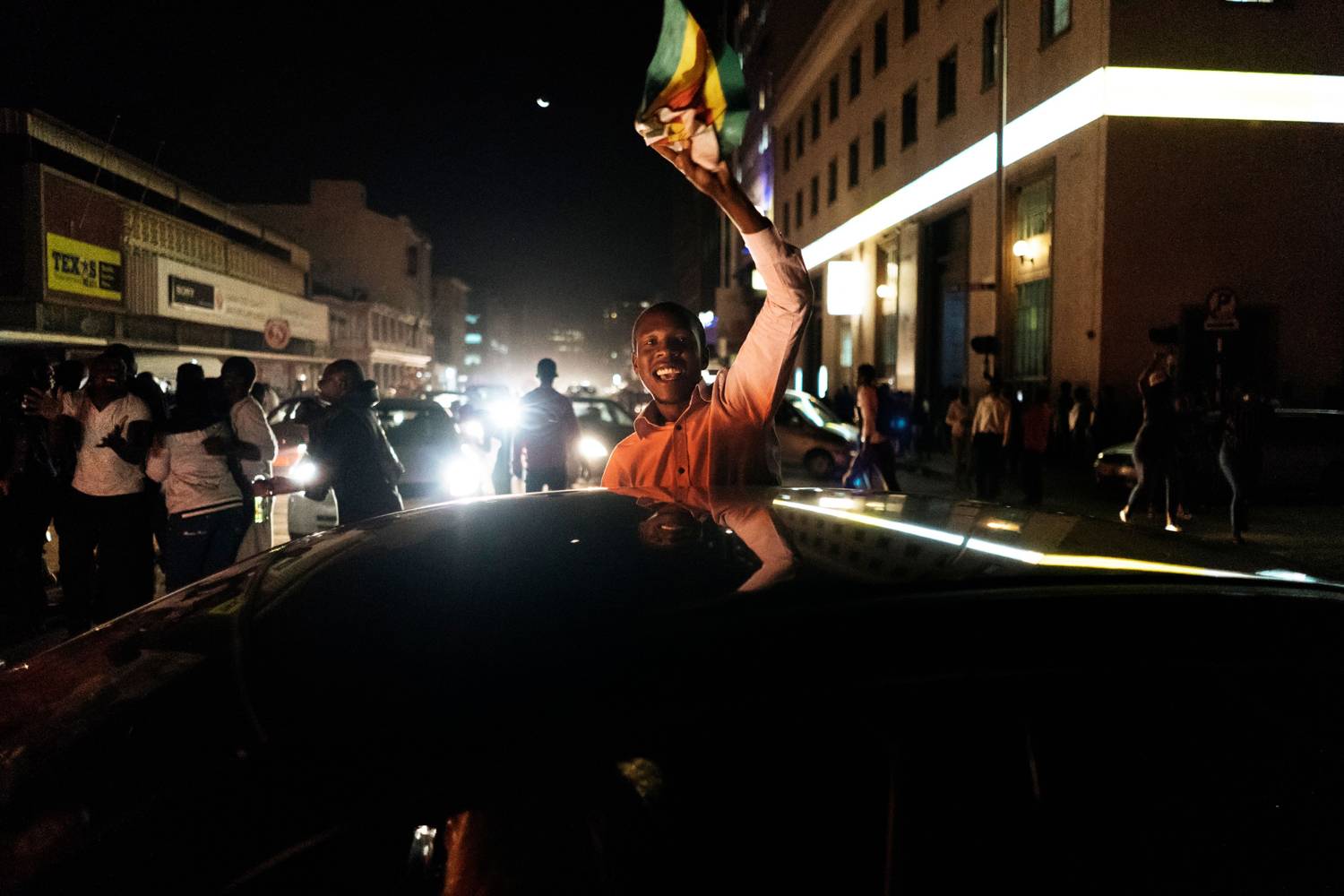 A man waves a Zimbabwean national flag as he celebrates with other citizens in the streets of Harare after the resignation of President Mugabe.MARCO LONGARI/AFP / Getty Images