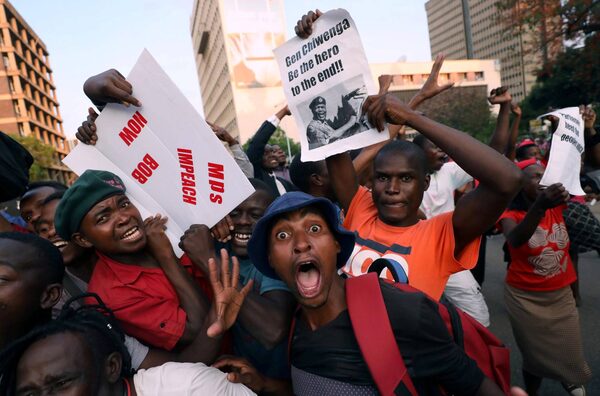 Zimbabwe's members of parliament celebrate after Mugabe's resignation in Harare.JEKESAI NJIKIZANA/AFP / Getty Images