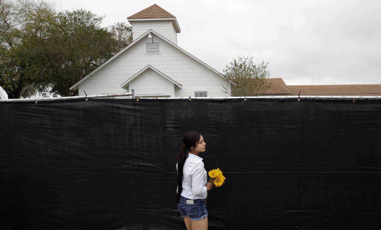 A woman places flowers in a fence for the victims of the shooting outside of the church.Eric Gay/The Associated Press