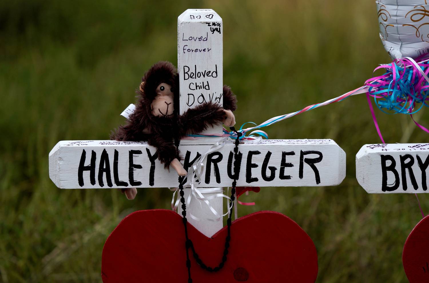 A toy monkey hugs the cross for 16-year-old Haley Krueger.Rick Wilking/Reuters