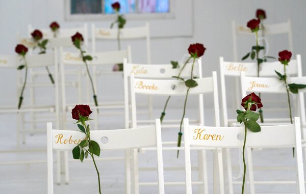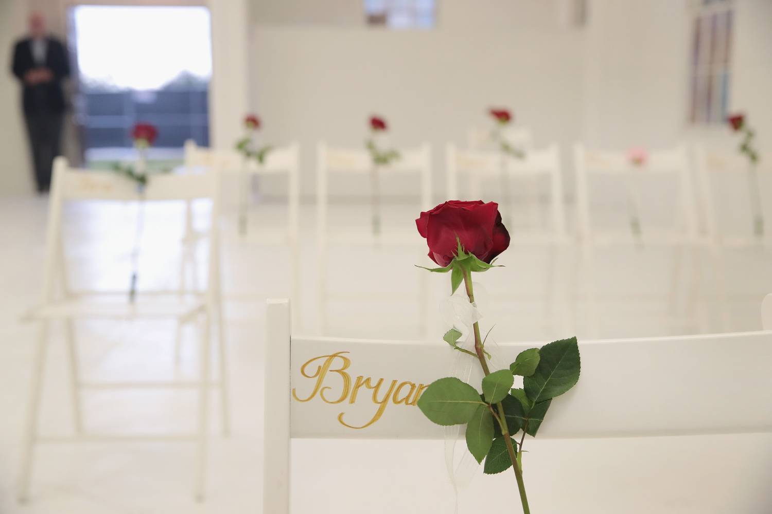Chairs and roses show where Joann and Brooke Ward and others were found dead at the First Baptist Church.Rick Wilking/Reuters