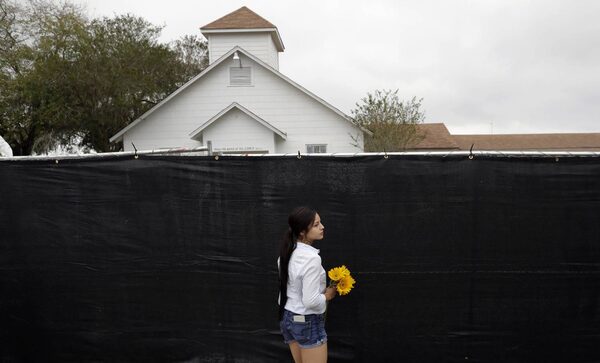 People pray at First Baptist Church where 26 people were killed in a shooting attack.Rick Wilking/Reuters