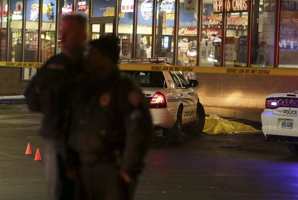 Police stand guard Wednesday, Dec. 24, 2014, following a shooting Tuesday at a gas station in Berkeley, Mo. St. Louis County police say a man who pulled a gun and pointed it at an officer has been killed.David Carson/St. Louis Post-Dispatch/The Associated Press