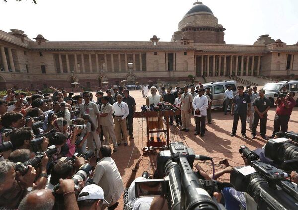 Hindu nationalist Narendra Modi, who will be the next prime minister of India, speaks with the media after his meeting with India's President Pranab Mukherjee at the Presidential Palace in New Delhi May 20, 2014.ADNAN ABIDI/Reuters