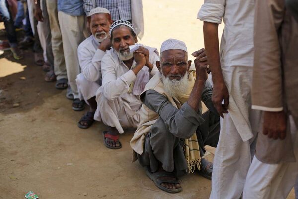 Elderly Indian Muslims wait outside a polling booth to cast their votes near Shahpur village in Muzaffarnagar, in the northern Indian state of Uttar Pradesh, Thursday, April 10, 2014.Altaf Qadri/The Associated Press