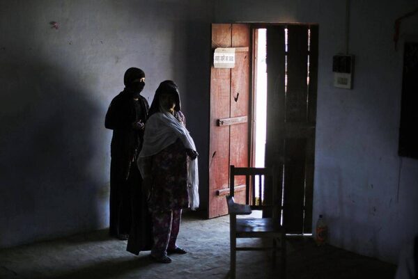 Indian women stand by the door of a polling booth after casting their votes near Shahpur village in Muzaffarnagar, in the northern Indian state of Uttar Pradesh, Thursday, April 10, 2014.Altaf Qadri/The Associated Press