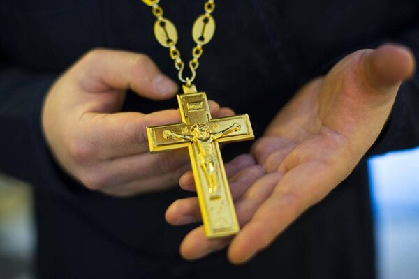 Orthodox Priest Alexei Kulberg holds a cross at The Bolshoi Zlatoust Church in Yekaterinburg, Russia.John Lehmann/The Globe and Mail