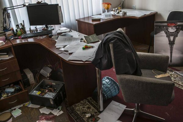 Scattered belongings inside an office that was stormed by pro-Russian demonstrators, in the regional government building that was seized by the protesters, in Donetsk, Ukraine, April 9, 2014.MAURICIO LIMA/The New York Times