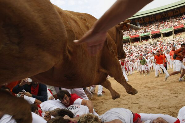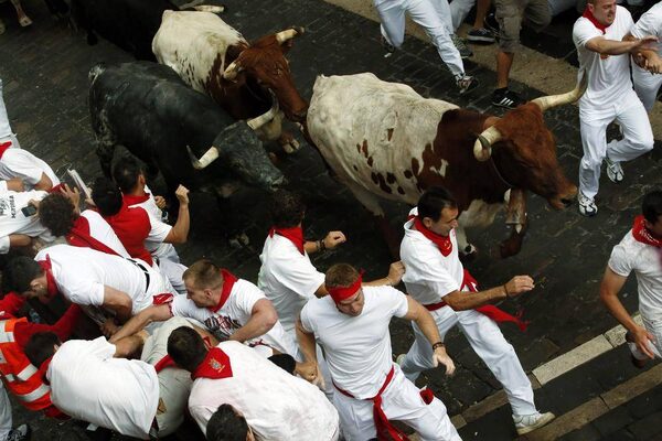 The first running of the bulls in Pamplona, Spain.ALVORO BARRIENTOS/The Associated Press