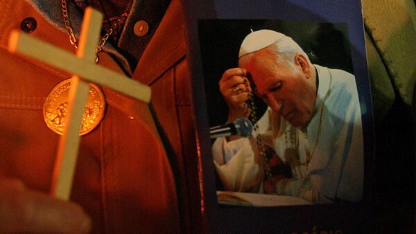 At the Brunelli religious-articles shop in Rome, the best-selling objects, after the perennially popular rosaries, are the little items that feature images of the beloved Polish pope, John Paul II.