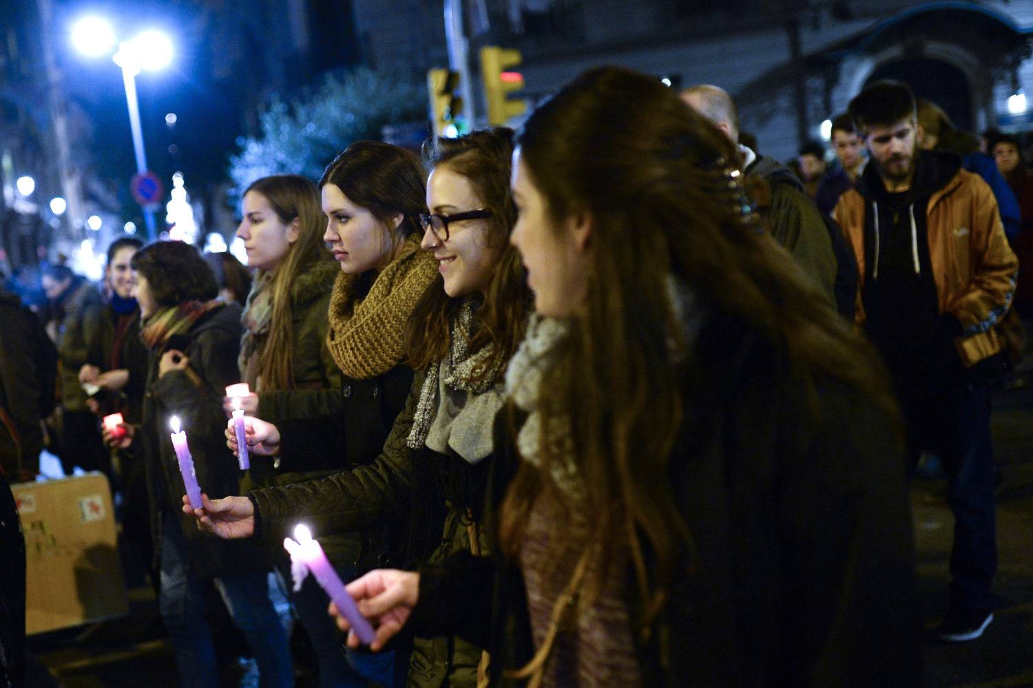 Women hold candles as they protest during a demonstration against domestic violence in Barcelona.Josep Lago/AFP / Getty Images