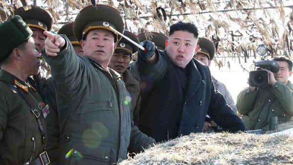 In this March 11, 2013 file photo, North Korean leader Kim Jong-un, third left, points at South Korea’s western border island of Baengnyeong during his visit to the Wolnae Islet Defense Detachment, North Korea.Korean Central News Agency/Korea News Service/The Associated Press