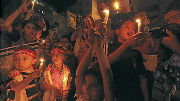 Palestinian children in Gaza City hold candles during a rally in solidarity with Palestinian prisoners held in Israeli jails, Oct. 13, 2011.MOHAMMED SALEM