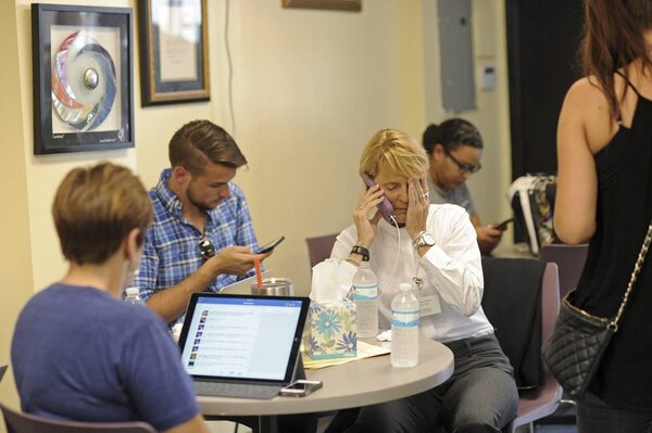 Rev. Shirley Strader talks on the phone at the LGBT community center in Orlando, Fla.Sarah Beth Glickstein/The New York Times