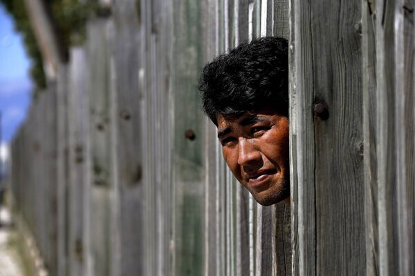 An Afghan immigrant looks through a wooden fence in a factory as he prepares to make a run towards the ferry terminal in the western Greek town of Patras.Yannis Behrakis/Reuters