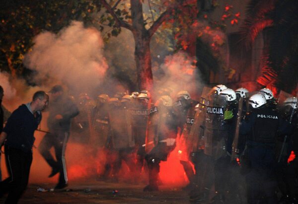 Several thousand protesters charged at the Parliament building in downtown Podgorica, the capital, shouting "Milo Thief" and throwing various objects, including fire-bombs, at riot police guarding the site. The police then threw tear gas, chasing away the demonstrators with armoured vehicles.