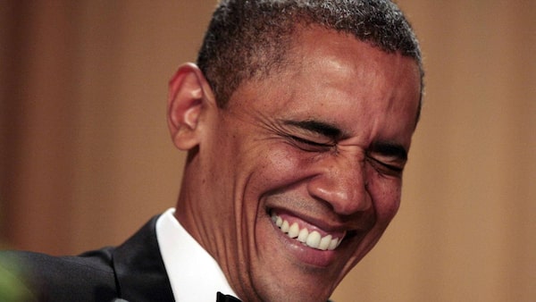 U.S. President Barack Obama laughs at the White House Correspondents' Association annual dinner in Washington April 28, 2012.Larry Downing/Reuters