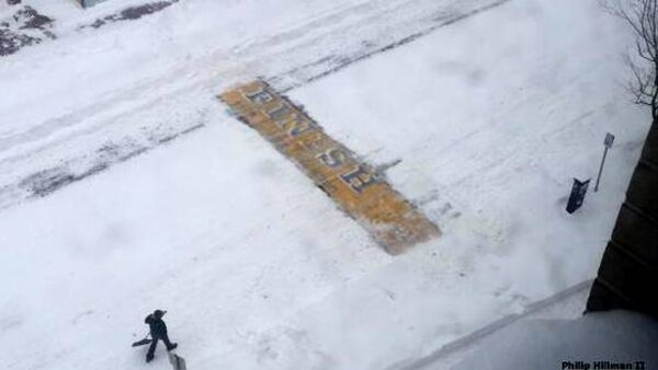 An unidentified man in Boston was hailed as a folk hero after he was photographed Tuesday, January 27, clearing snow from the finish line of the Boston Marathon, where twin bombs killed three people and wounded 260 in 2013.Philip Hillman II/ Boston Police Dept.