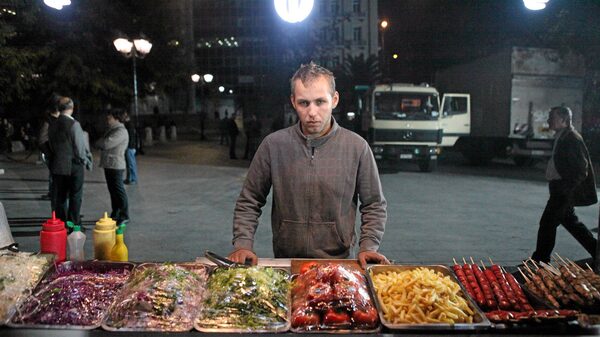 Michael Voliotis, 22, a food vendor in downtown Athens, lives with his parents. His father, a school cook, has seen his salary cut from 1200 to 900 Euros per month as part of the government's new austerity regime -- but he still enjoys three months of paid vacation per year, part of an extensive system of perks for public employees.Graeme Smith