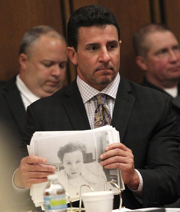 Lawyer Craig Weintraub holds an emergency room photo of Michelle Knight that was taken on the day of her escape during Ariel Castro's sentencing for kidnapping, rape and murder in Cleveland, Ohio August 1, 2013.AARON JOSEFCZYK/Reuters