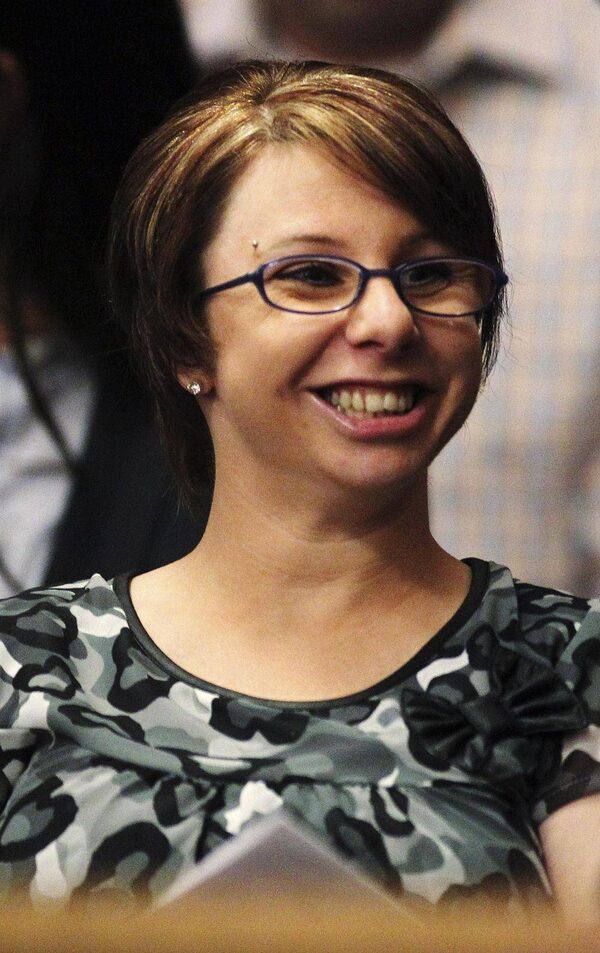 Michelle Knight smiles as she appears in court for the sentencing of Ariel Castro in Cleveland, Ohio August 1, 2013.AARON JOSEFCZYK/Reuters