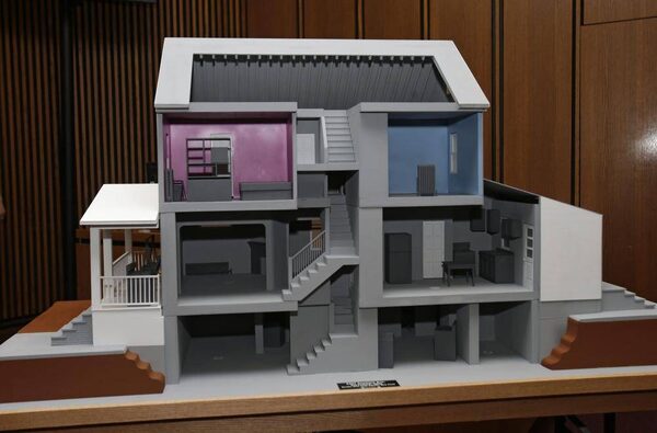 A close-up of a model of the house on Seymour Ave. where Ariel Castro held three women is displayed in court Thursday, Aug. 1, 2013, in Cleveland. Castro, a onetime school bus driver faces sentencing for kidnapping three women and subjecting them to years of sexual and physical abuse.Tony Dejak/The Associated Press