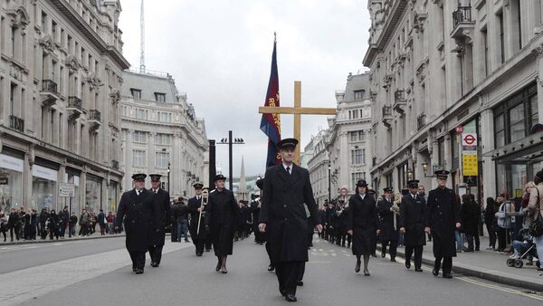 A Salvation Army marching band parade down Regent Street on Easter Sunday in London April 8, 2012.LUKE MACGREGOR/Reuters