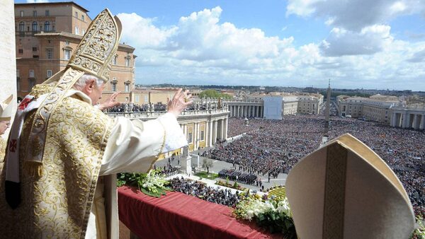 In this picture made available by the Vatican newspaper Osservatore Romano, Pope Benedict XVI greets the faithful after the Urbi and Orbi blessing at the end of the Easter Mass in St. Peter's Square at the the Vatican Sunday, April 8, 2012.Osservatore Romano/AP