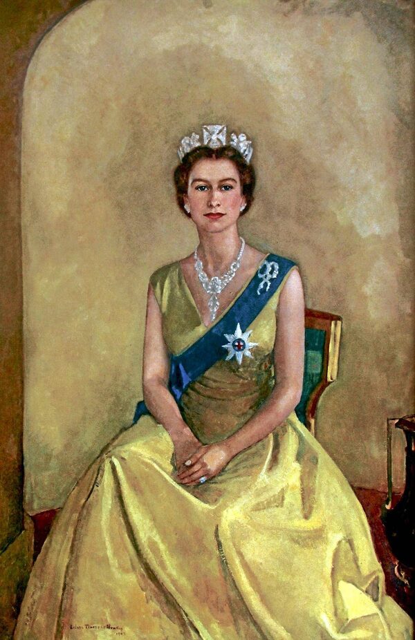 Elizabeth II. Queen of the United Kingdom, Canada and Her other Realms and Territories, Head of the Commonwealth, since 1952., 1957. Portrait by Lilias Torrance Newton.L. Torrance Newton