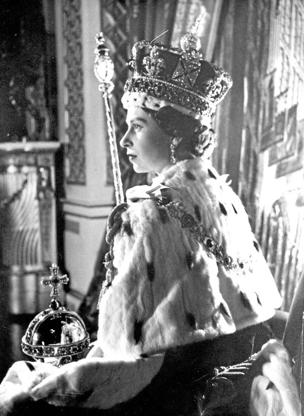 Queen Elizabeth II poses in the Throne Room of Buckingham Palace after her June 2, 1953 coronation for this photo made by Cecil Beaton. She is attired in her coronation dress and her purple velvet robe. On her head is the Imperial Crown which she will wear on State occasions. In her left hand she holds the Orb, emblem of sovereign power and in her right the scepter with cross, ensign of kingly power and justice.Cecil Beaton/The Associated Press
