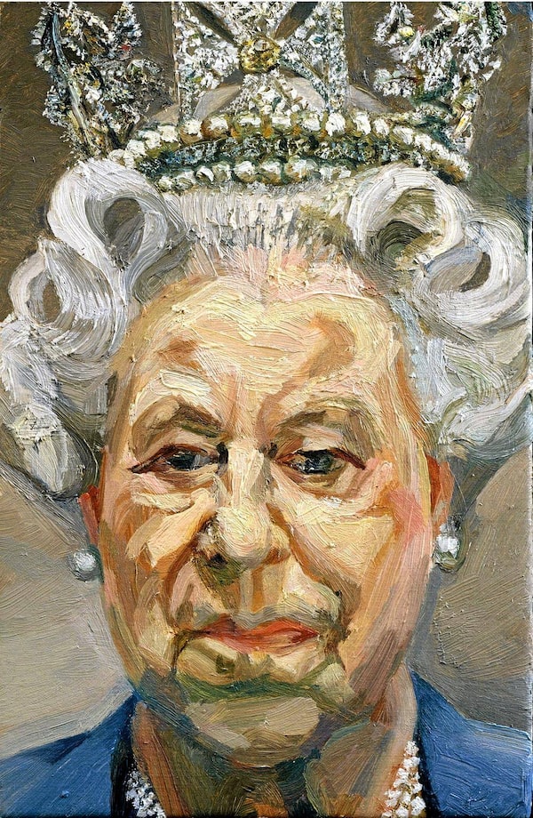 British artist Lucian Freud's new portrait of Britain's Queen Elizabeth II. Freud's characteristically uncompromising and unflattering style shows The Queen with a glum expression. The painting was the first shown to the public in the inaugural exhibition at the Queen's Gallery, Buckingham Palace.Royal Collection/The Associated Press