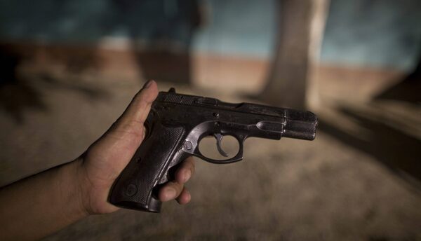A police officer shows his damaged weapon in the police station in San Pedro Sula, Honduras, MArch 8, 2012.Esteban Felix/AP Photo