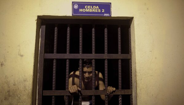 A detainee peers through the jail bars at a police station in San Pedro Sula, Honduras, MArch 8, 2012.Esteban Felix/AP Photo