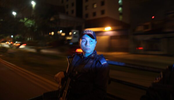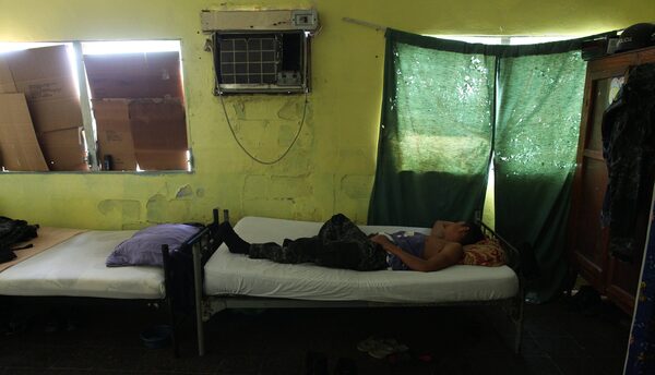 A member of the Cobras elite police force, part of the national police, rests in a bedroom at their headquarters in San Pedro Sula, Honduras, March 8, 2012. The city’s location near Honduras’ Atlantic coast and border with Guatemala have put it on key international drug trafficking routes.Esteban Felix/AP Photo