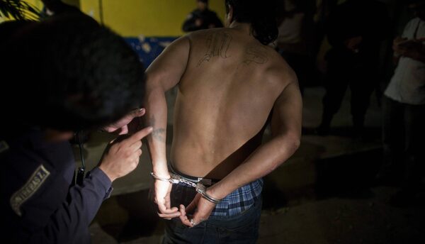 A police officer inspects tattoos on a Mara Salvatrucha gang member Jose Alexander Carranza after his arrest in San Pedro Sula, Honduras, March 8, 2012. No other country matches its rate of 86 slayings per 100,000 inhabitants a year, according to a 2011 United Nations Report. That is roughly 20 times the U.S. homicide rate.Esteban Felix/AP Photo